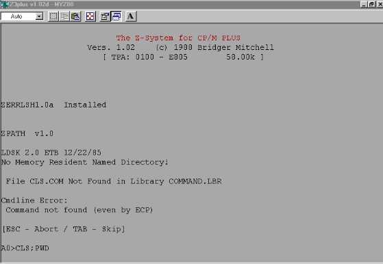 Dies liegt daran, daß er nicht einfach nur Z80-Code ausführt, sondern daß er auf dem PC ein komplettes, in sich abgeschlossenes CP/M-System emuliert, ein virtuelles CP/M.